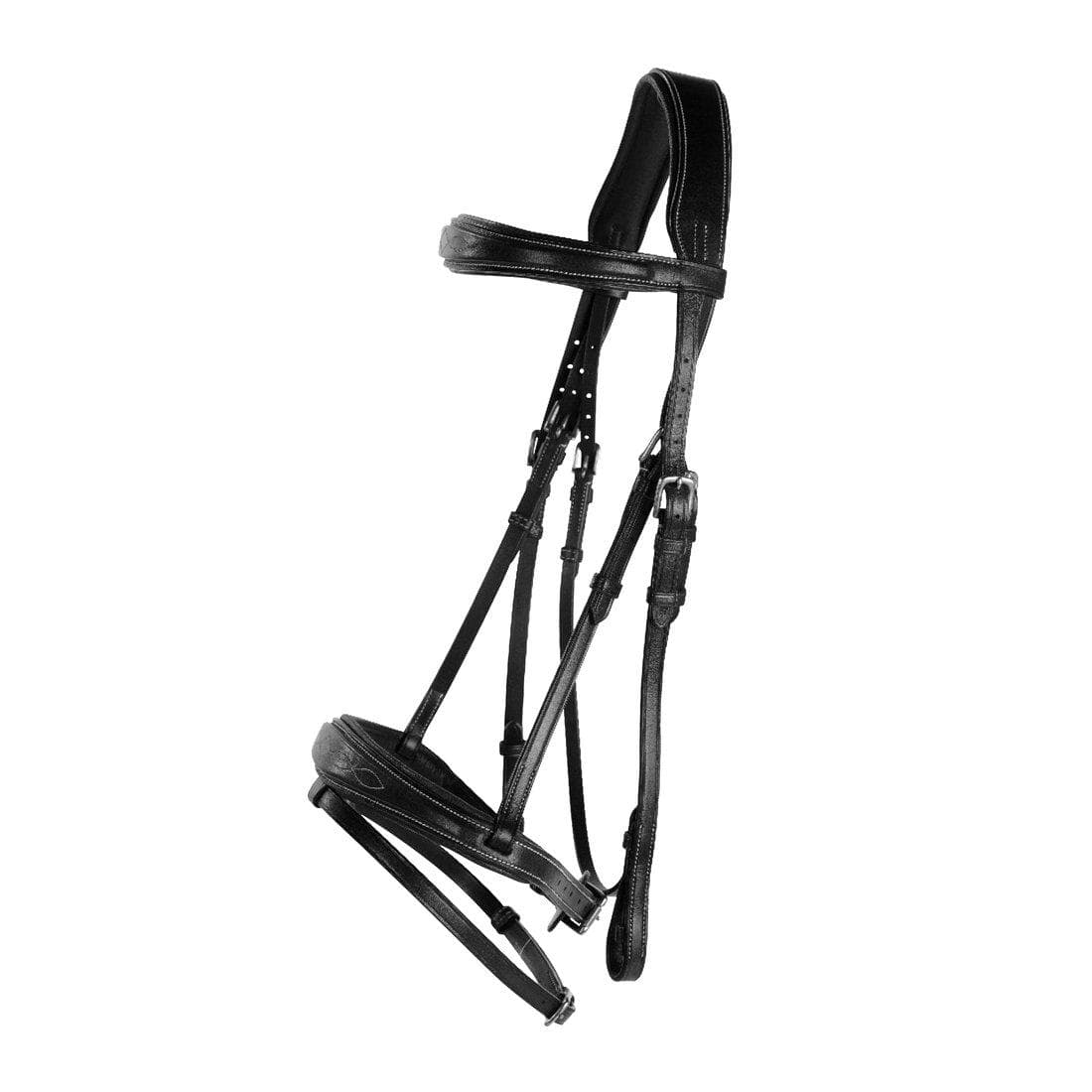 • Fodrad nosgrimma och pannband med dekorativa stickningar.
