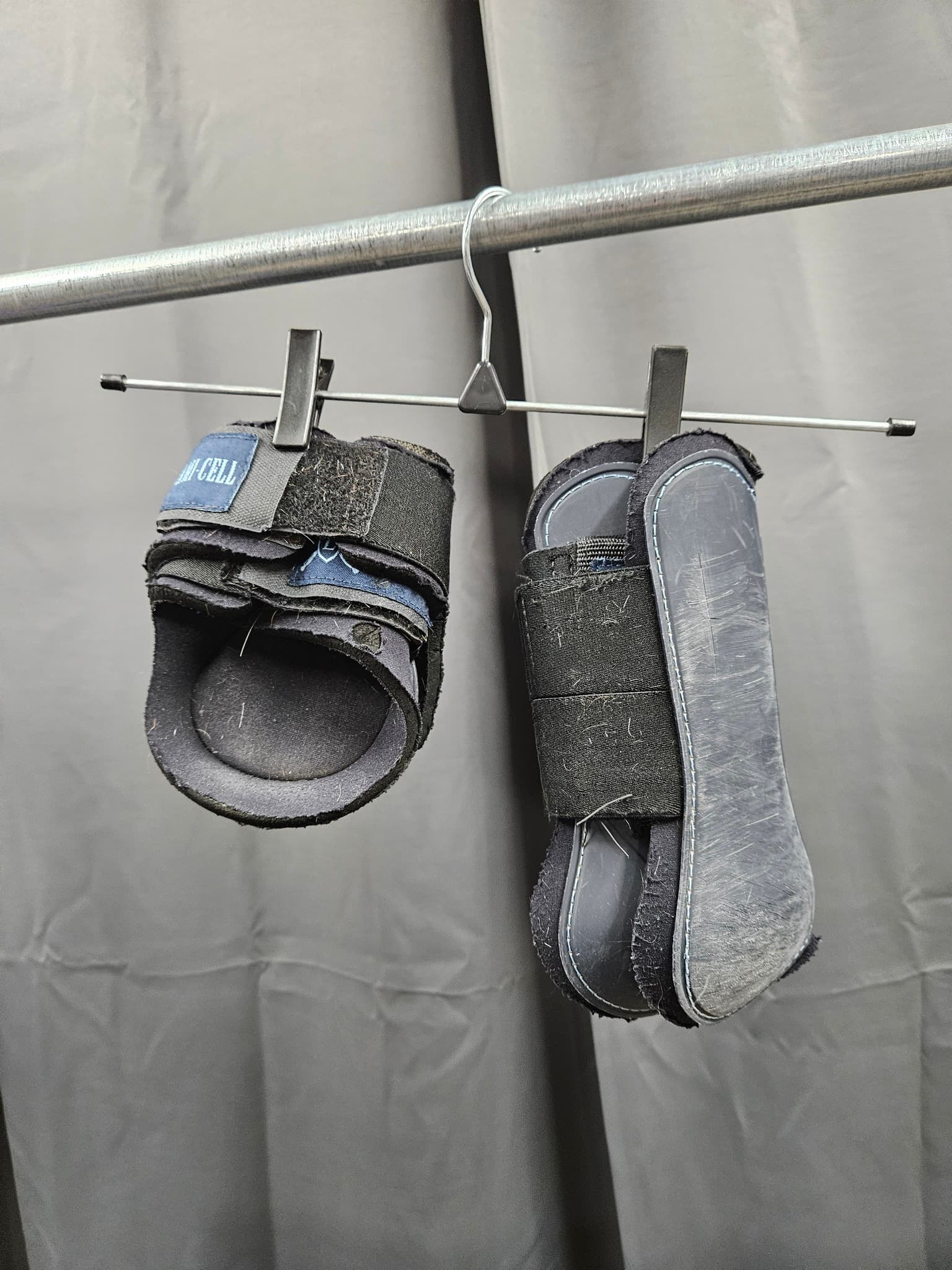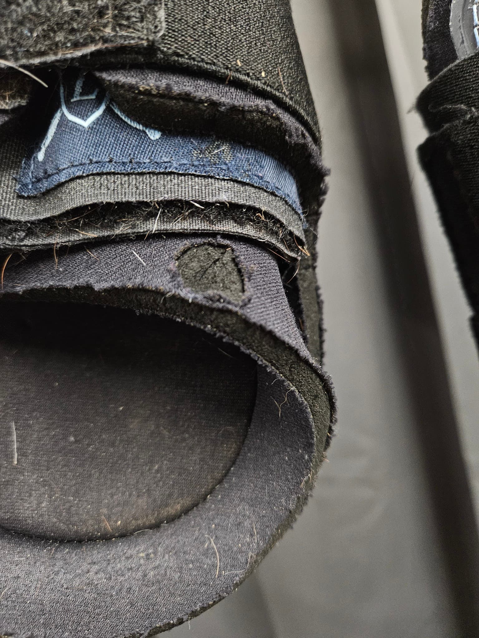 Liten skada i yttre neoprenet på ena bakskyddet.