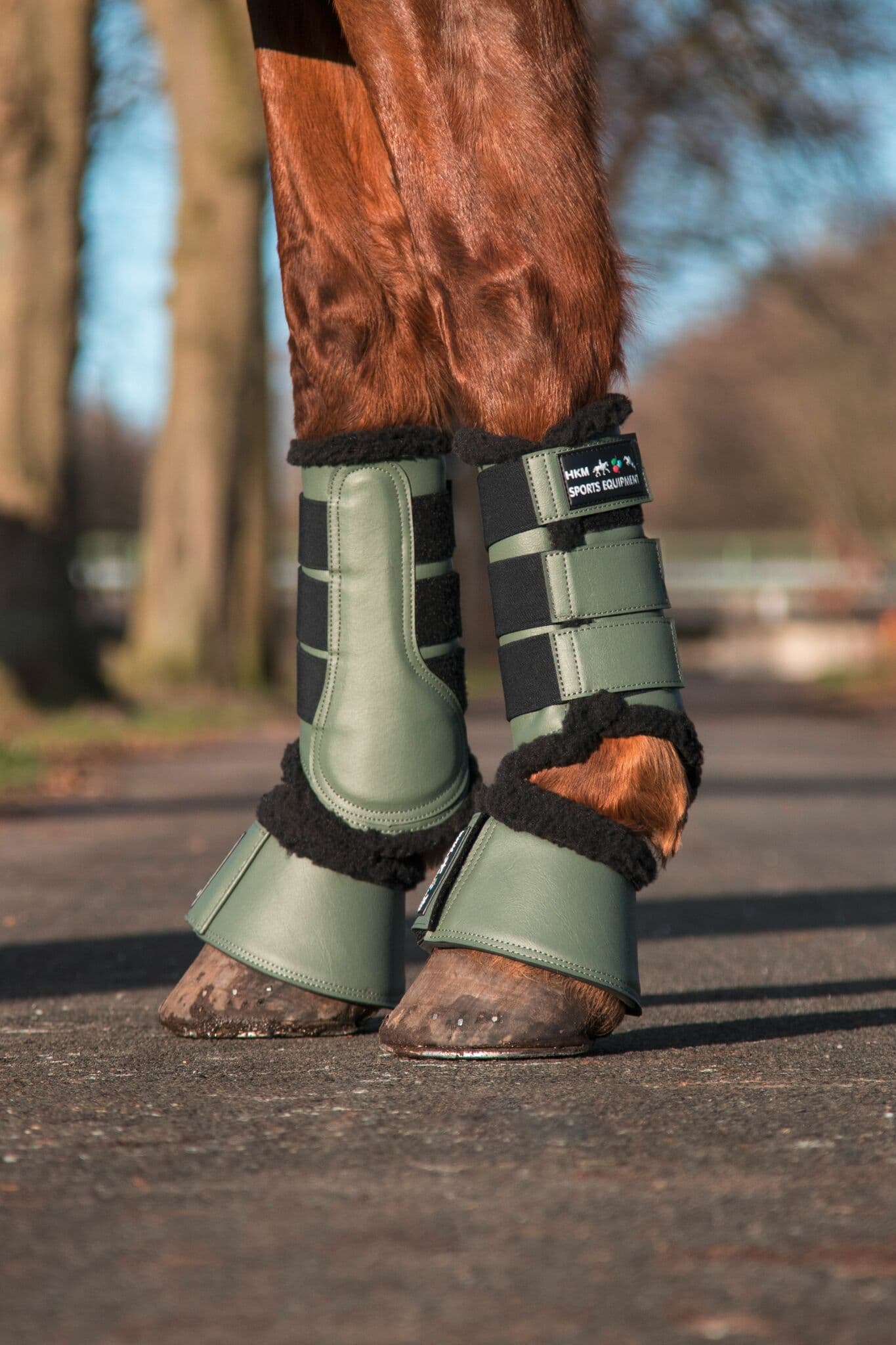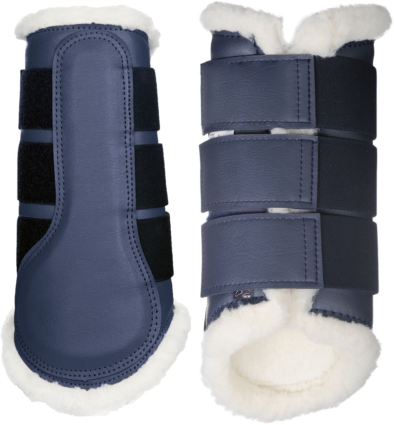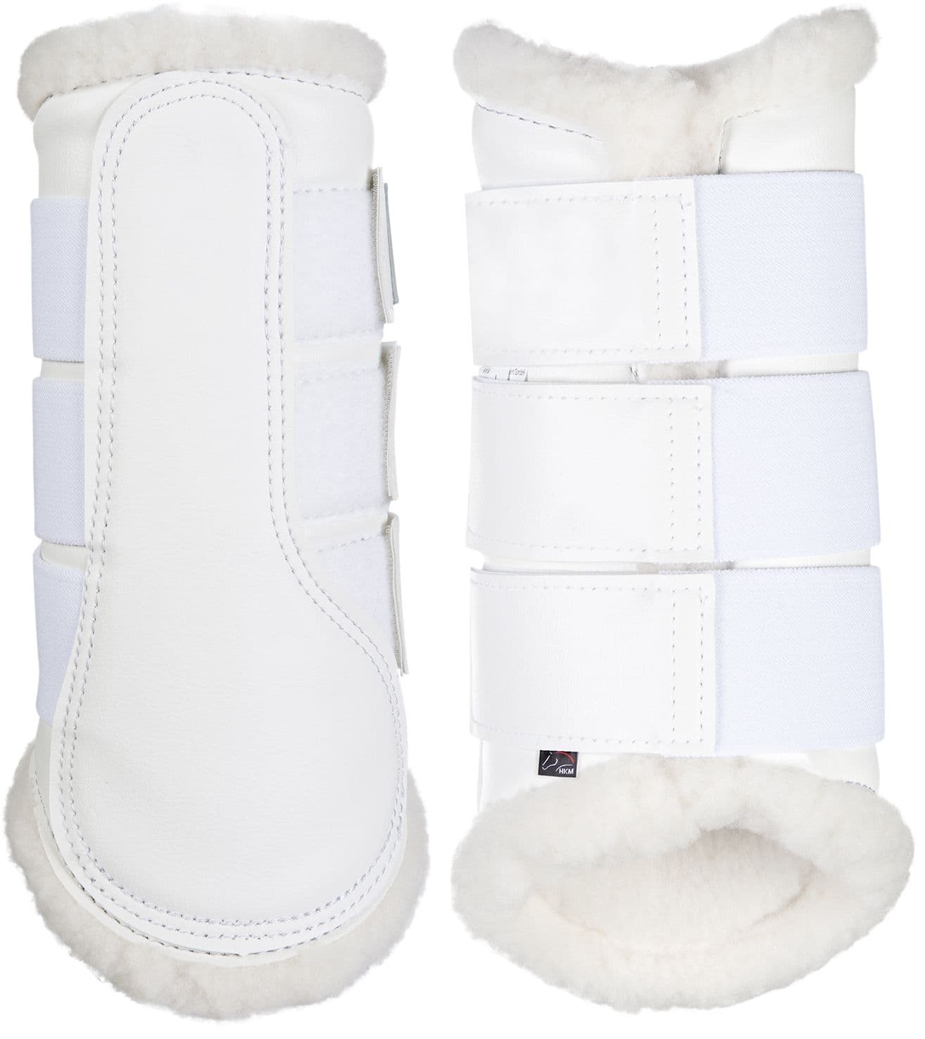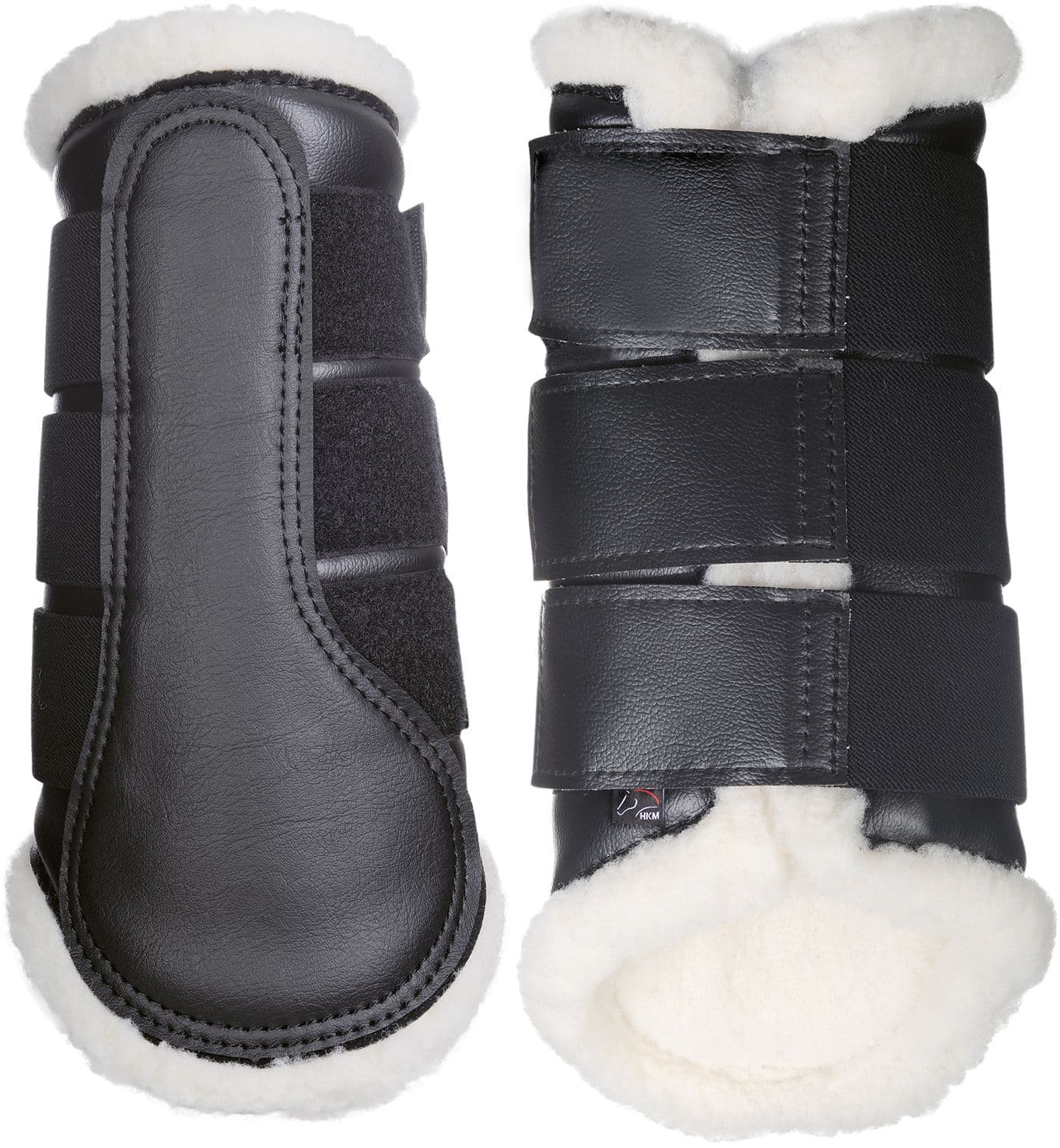- Benskydd i läderimitation med fuskpälsfoder.