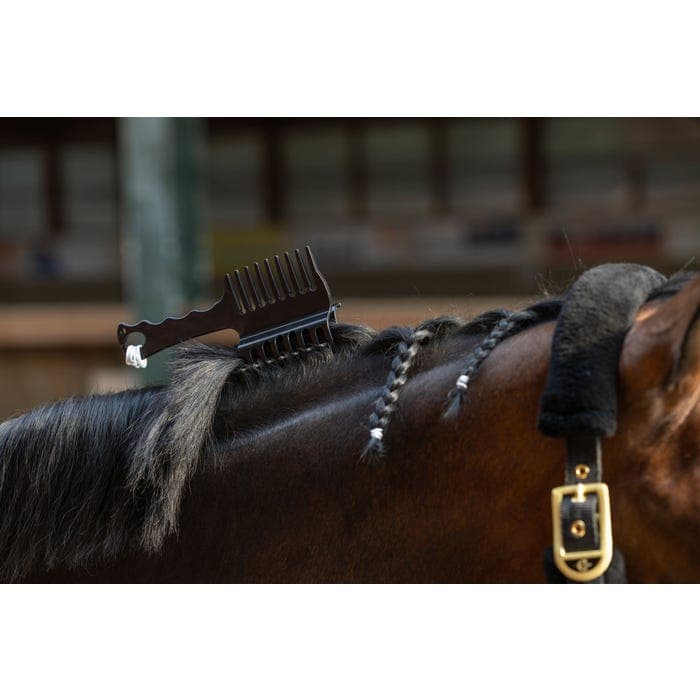 - Praktisk 3-i-1-kam med klämma och manbandshållare för enkel, jämn flätning av hästens man