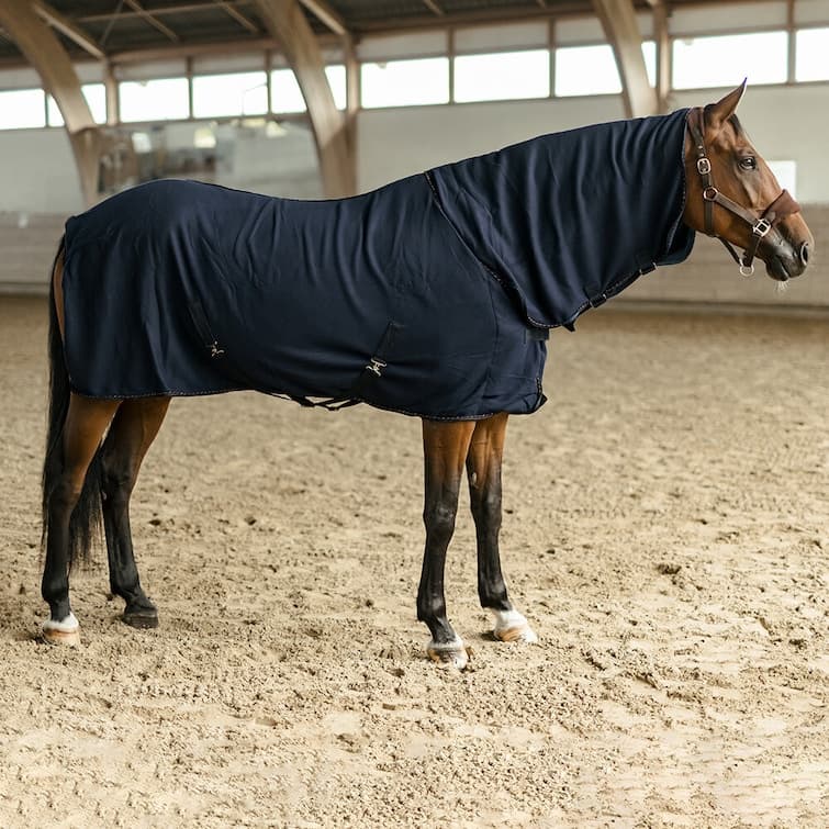 - Slät utsida, mjukt flossad fleece på insidan som transporterar bort fukten ifrån hästen och lägger det på utsidan av täcket.