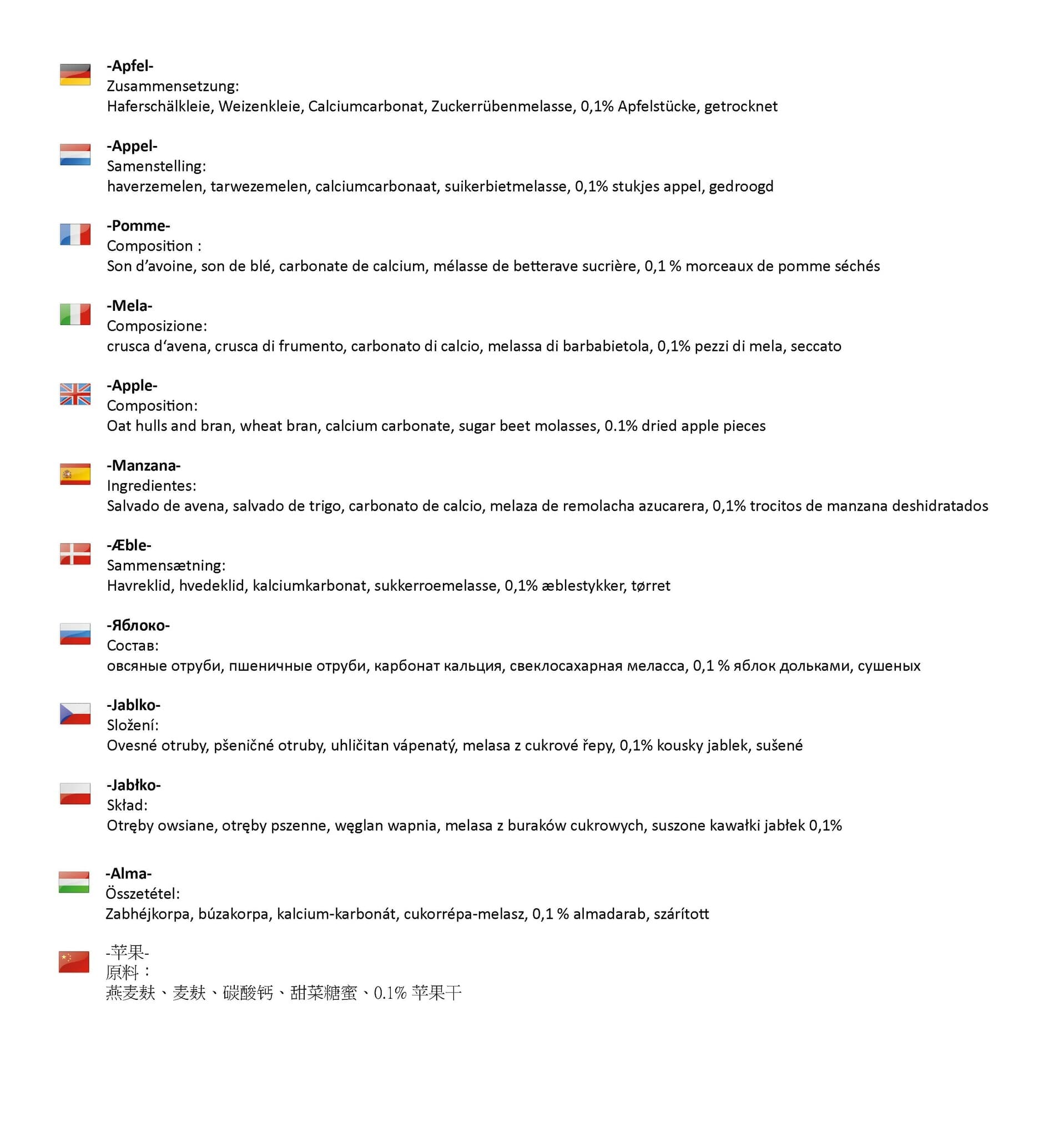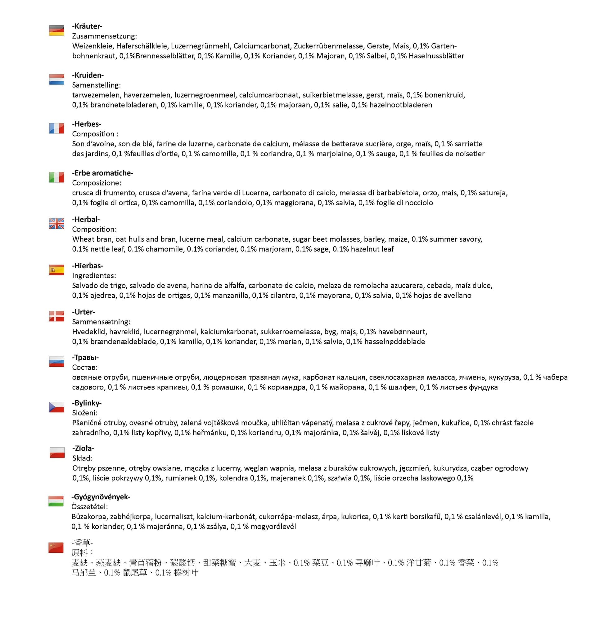 - för innehållsförteckning, se bilder för respektive smak