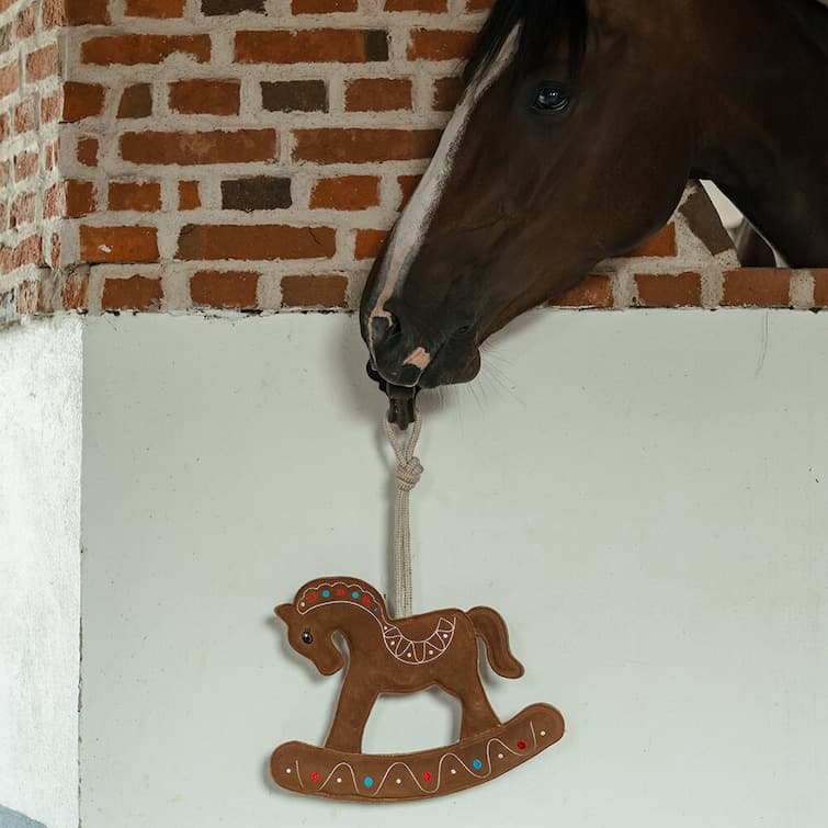 - Hästleksak / Hundleksak i form av en julig söt pepparkakshäst, tillverkad av mocka, fylld med Kokosnötsfiber.