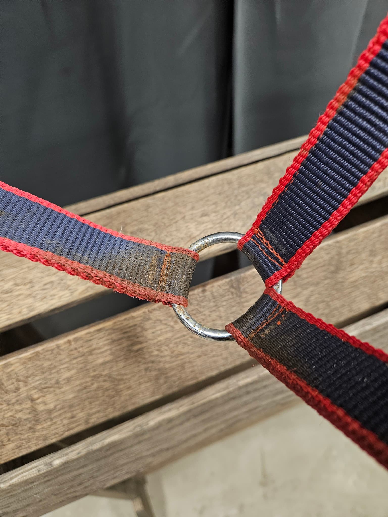 Lite missfärgad/smutsig vid ringen man fäster grimskaftet i, men ser knappt använd ut i övrigt.