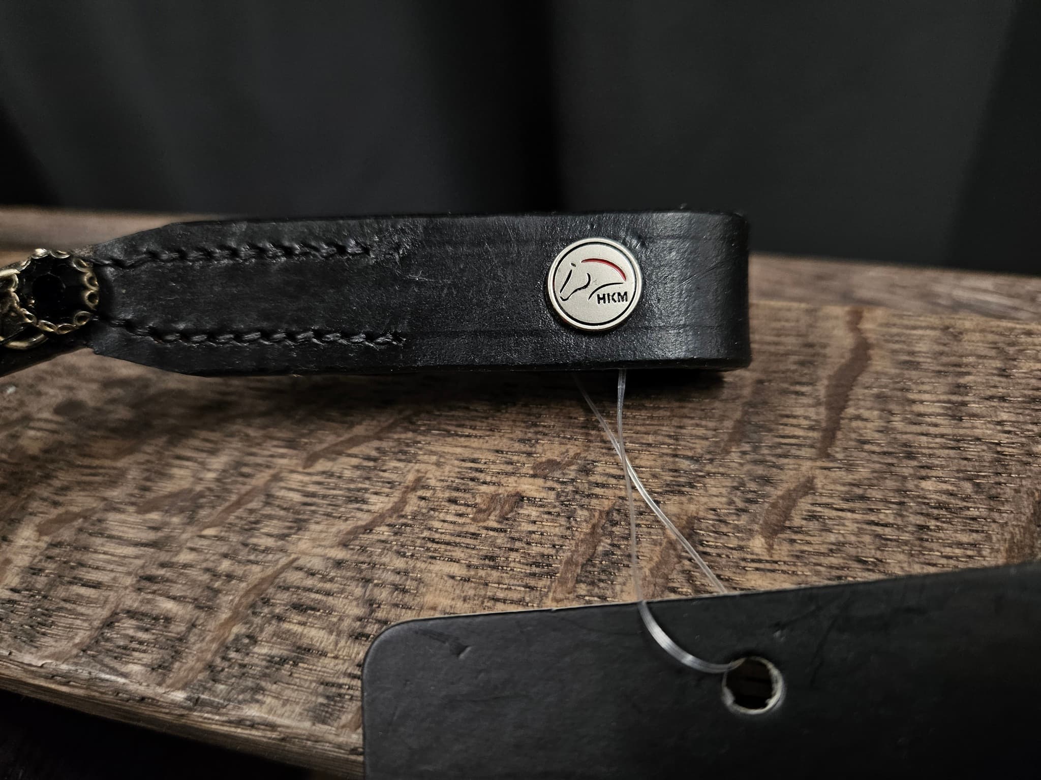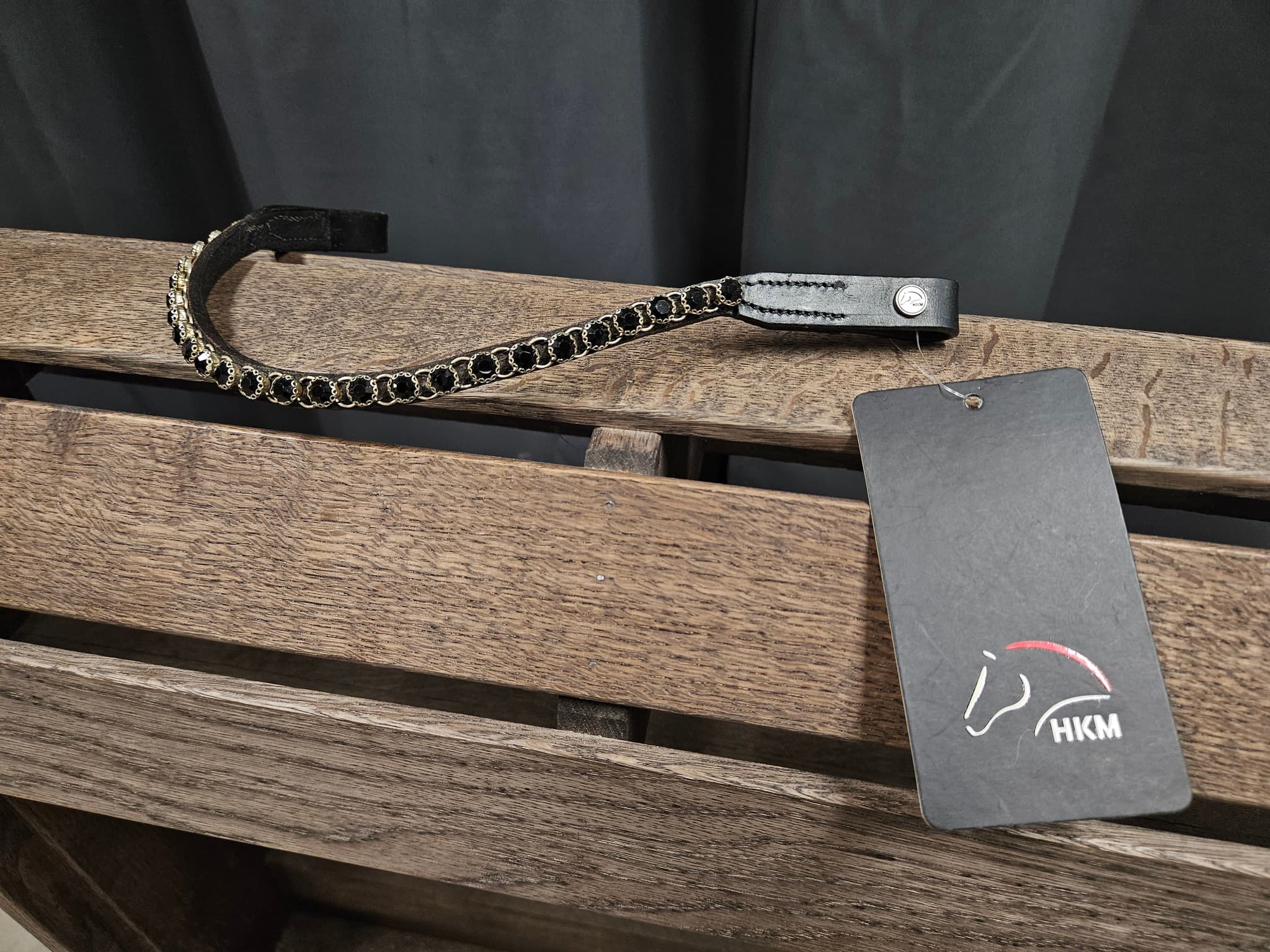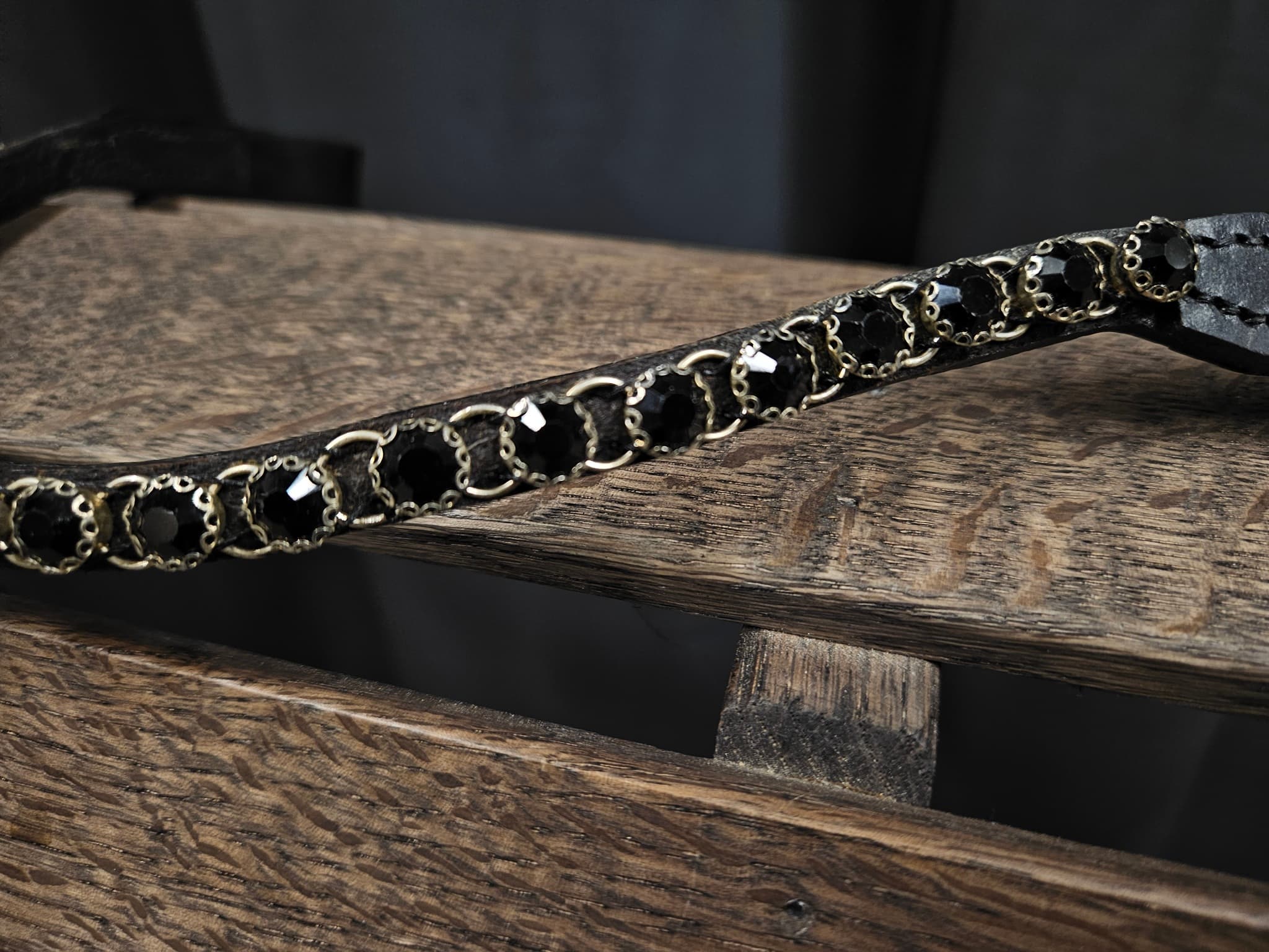 - Svart läder med blingstenar i vald färg.