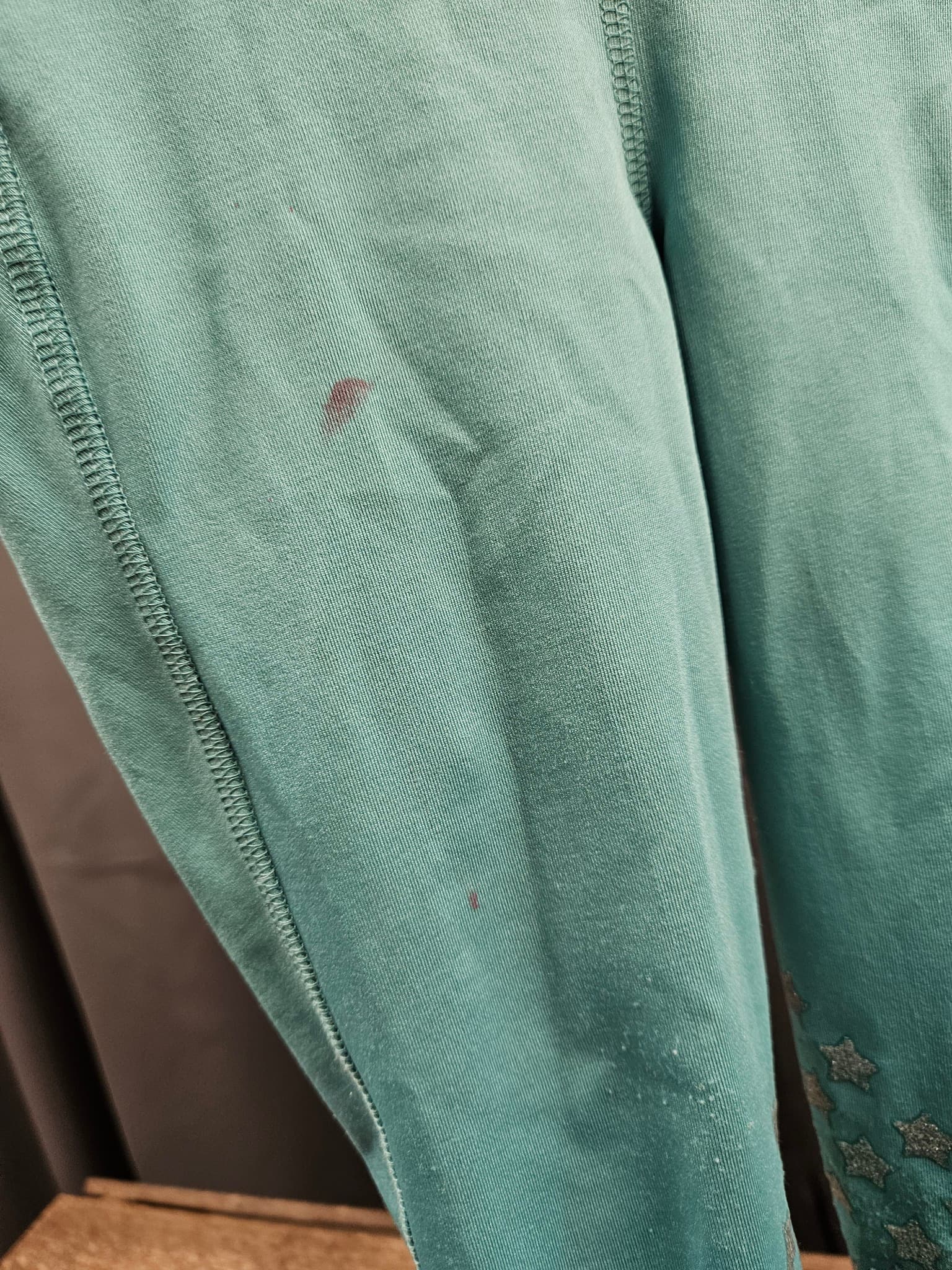 Har två fläckar på ena benet.