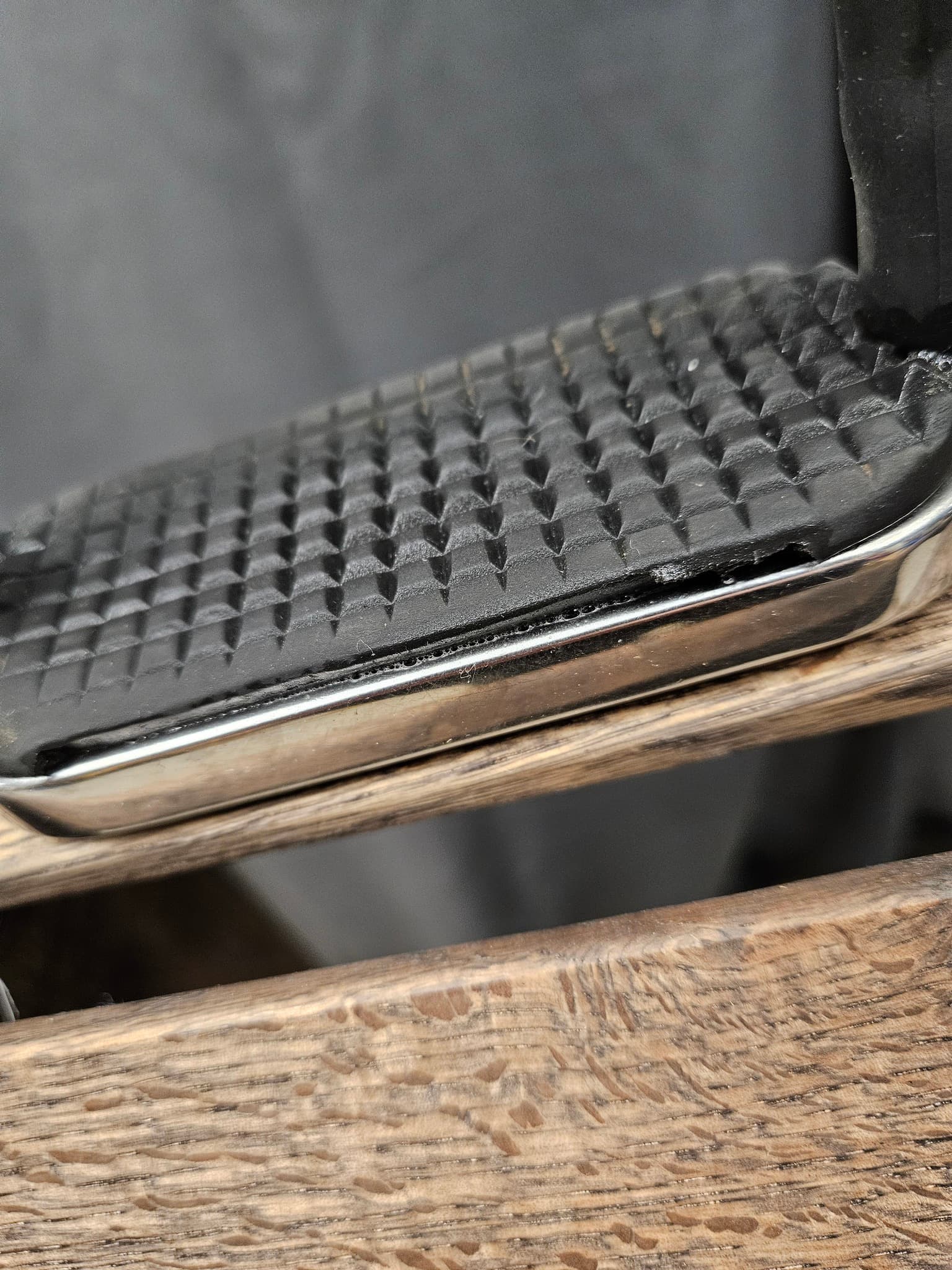 Ena stigbygelplattan är lite nött, men utan påverkan på funktion/användbarhet.