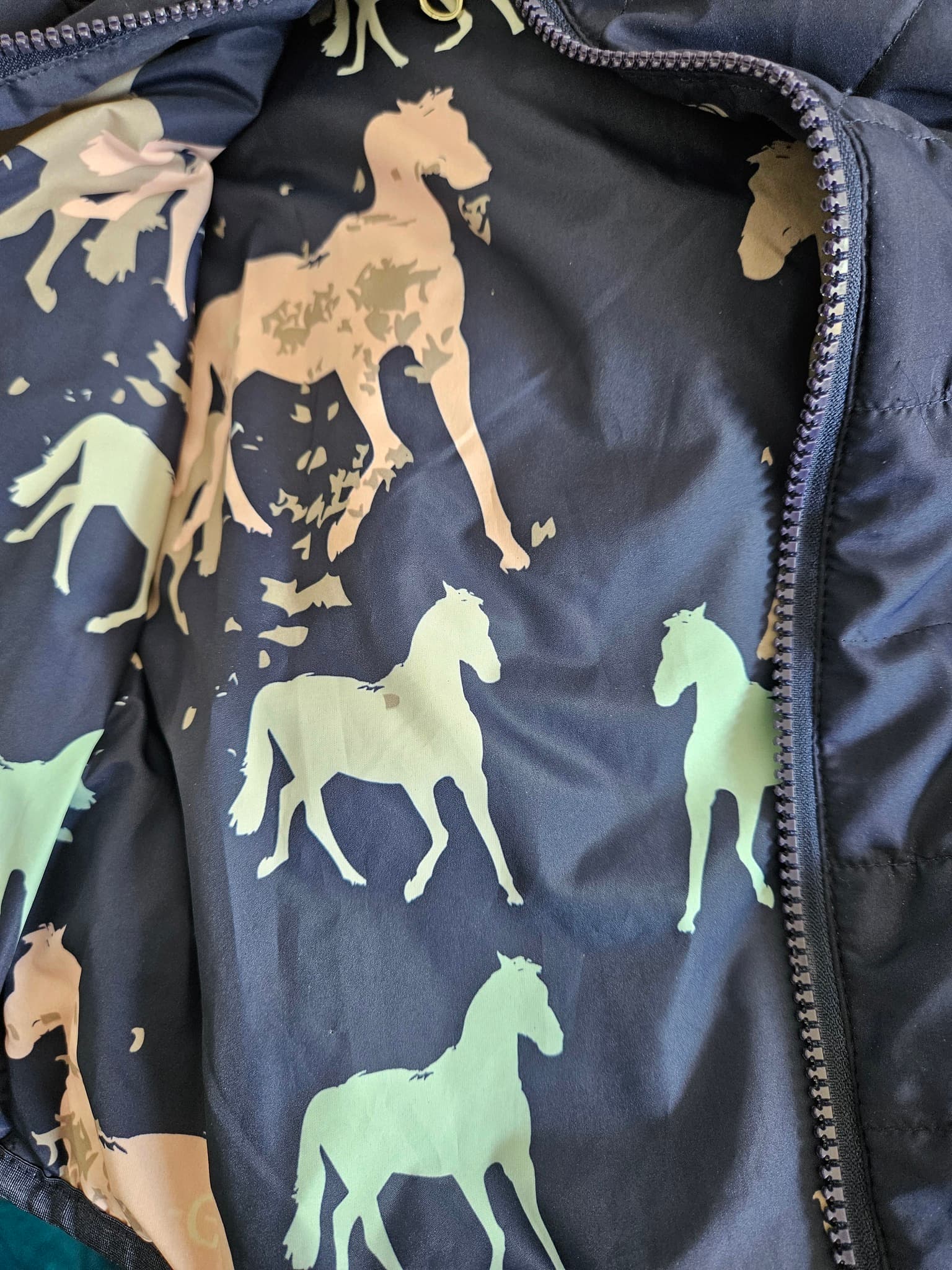 - Åt ena hållet marinblå, åt andra hållet med hästmotiv