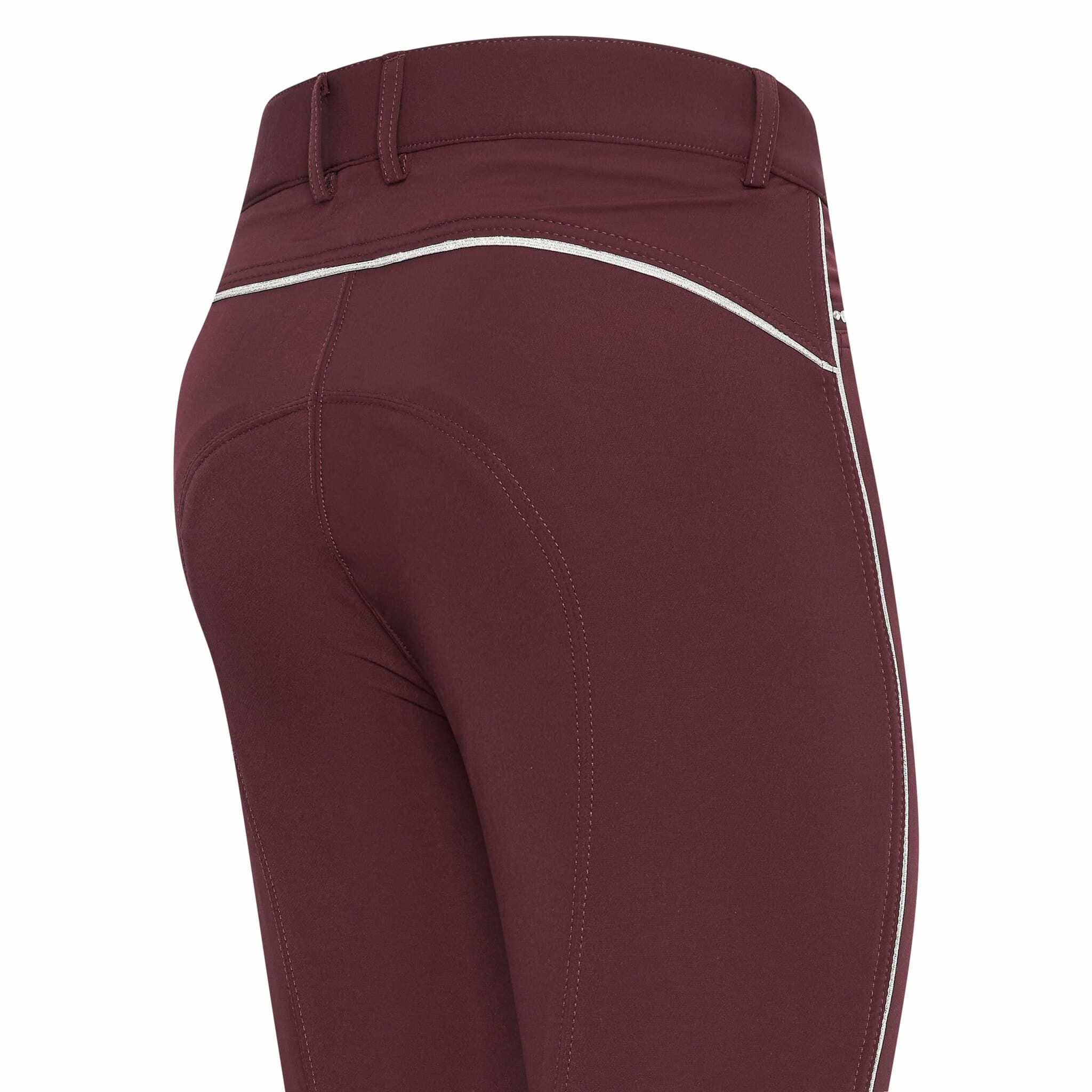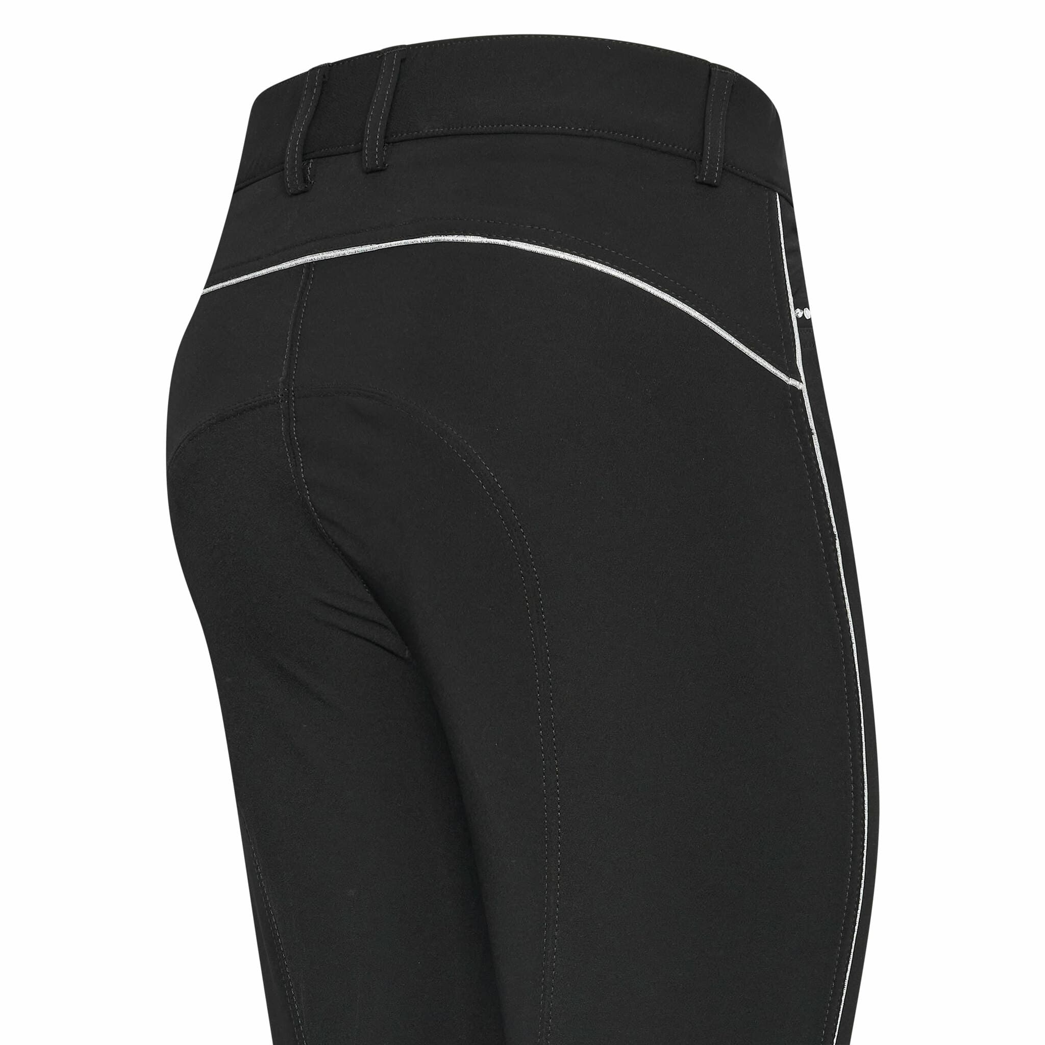 - Lyxiga ridbyxor med silverkanter längs benen och runt baksidan.